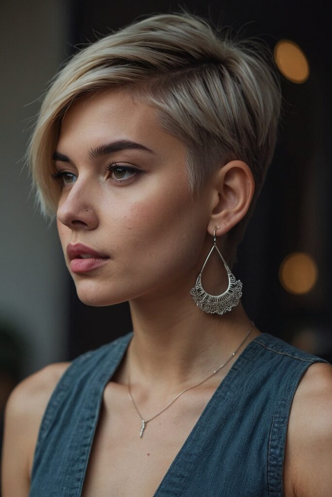 This cut creates a striking silhouette that highlights your facial features and neck.